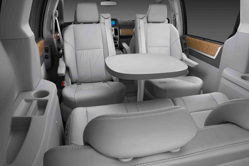 Plazas y Comodidad La Nueva Chrysler Town & Country viene tapizada con telas durables o cuero en los asientos que se conservan bien y se ven sencillamente especiales. Asientos delanteros eléctricos con ajuste de ocho posiciones y un nuevo ajuste lumbar eléctrico de dos posiciones para el asiento del conductor. El sistema de memorias permite que dos conductores recuperen instantáneamente su posición de sentado e incluye pedales ajustables eléctricos y espejos exteriores eléctricos. La Town & Country posee asientos de la primera y segunda corrida calefaccionados. Como equipamiento opcional, encontrará el volante calefaccionado, cuatro asientos tipo butaca para la segunda corrida al igual que la tercera corrida abatible eléctrica. Estilo Expresivo La Nueva Chrysler Town & Country está construida tomando en consideración la funcionalidad y la utilidad, con un estilo exclusivo y sofisticado. Confeccionada con los materiales más finos, destaca su diseño interior hermosamente inspirado con: